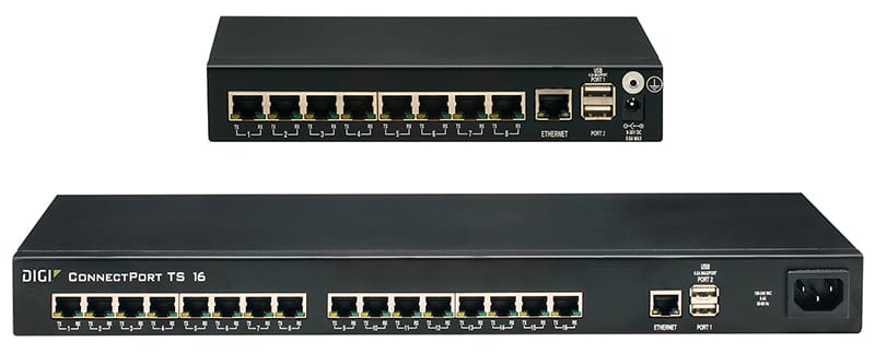 ConnectPort® TS 8/16 serial servers provide secure, easy EIA 232 or EIA 232/422/485 serial-to-Ethernet integration of virtually any device into wired Ethernet networks. They are ideal for use in a wide variety of demanding applications such as automation, robotics control, centralized device monitoring and management, data acquisition, and point-of-sale applications requiring COM/TTY ports, serial tunneling, or TCP/UDP functionality.