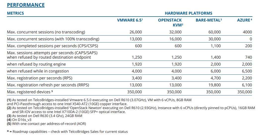 - Up to 60,000 simultaneous signaling and media sessions