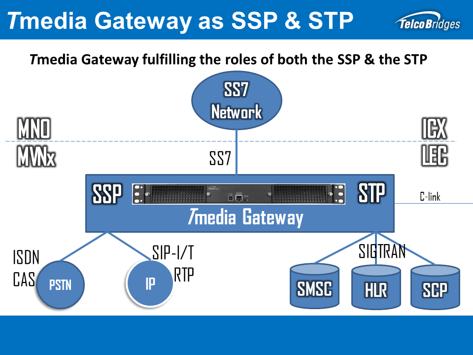 By substituting TelcoBridges's Tsig gateway with a Tmedia gateway we can combine the functionalities of both the SSP and the STP together.